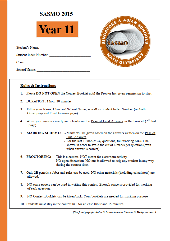 SASMO 2015 Grade 11